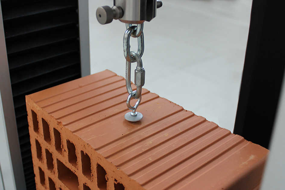 Compression or flexure tests are performed on traditional bricks and autoclaved aerated concrete, also available in slabs. Therefore, testing machine can be equipped with compression, flexure and tensile plates for of expansion bolt removal: these tests are very useful to determine the applicable load for shear and tensile testing of traditional fastening systems or chemical binders